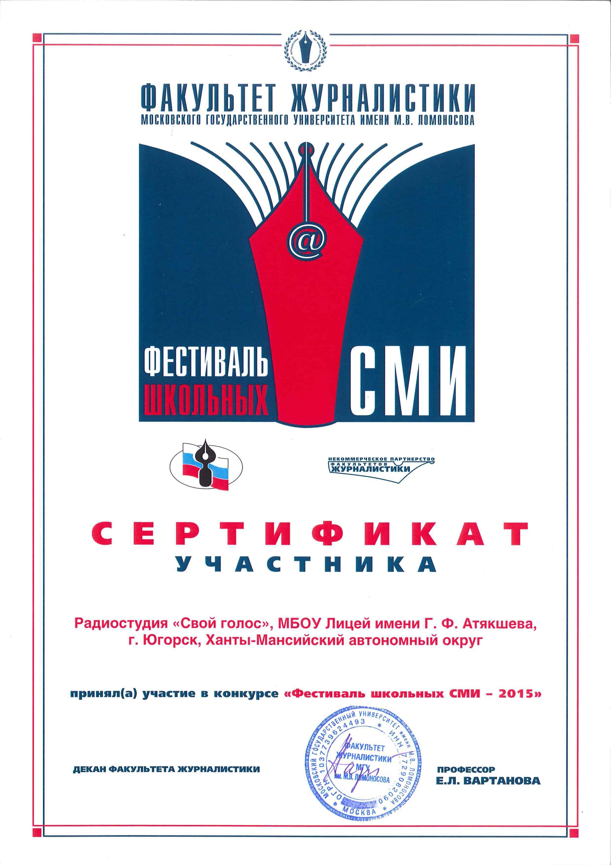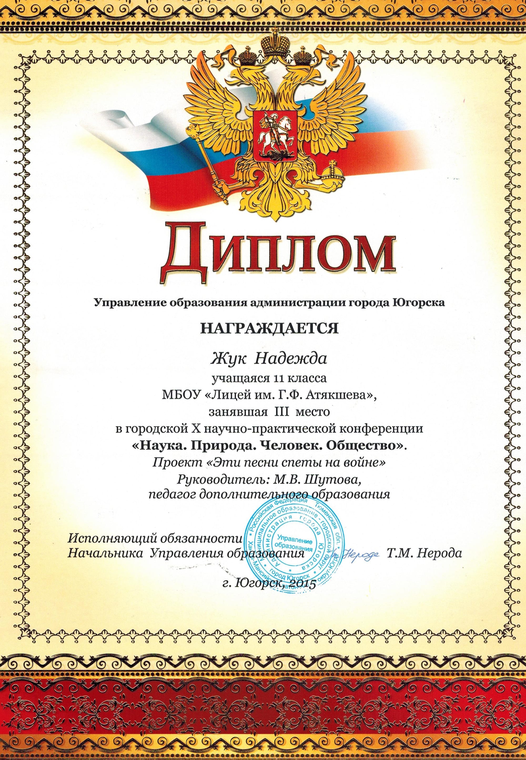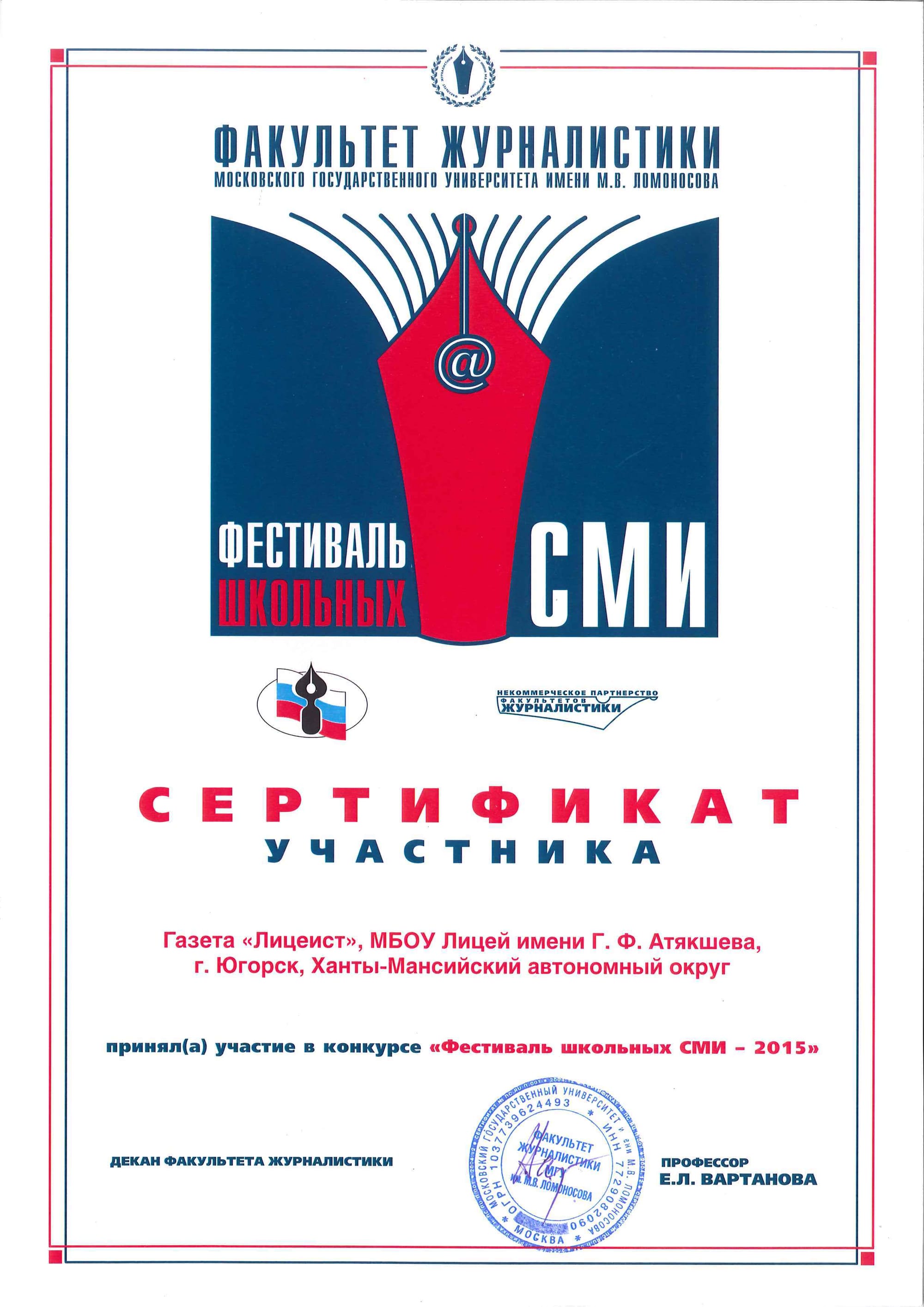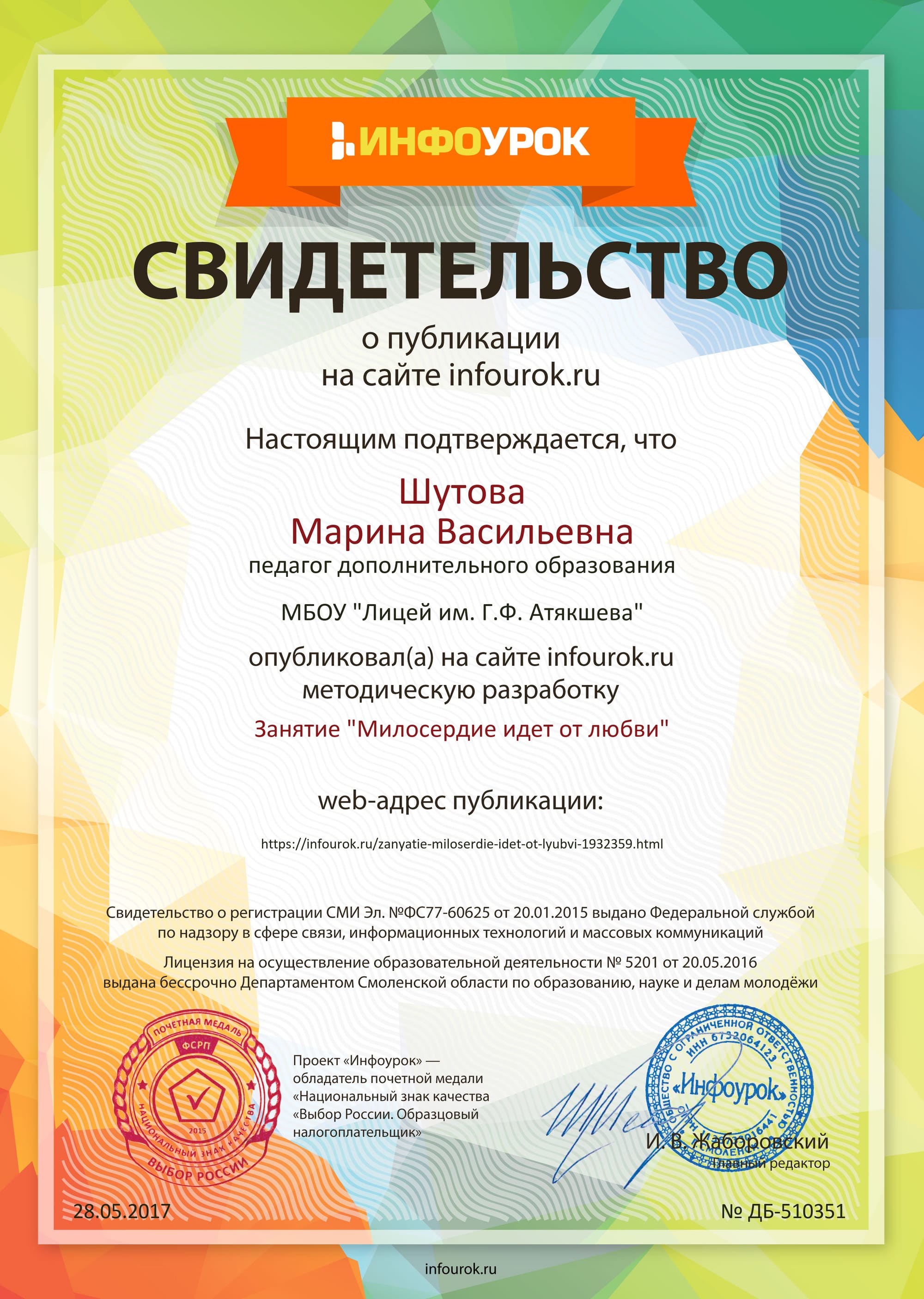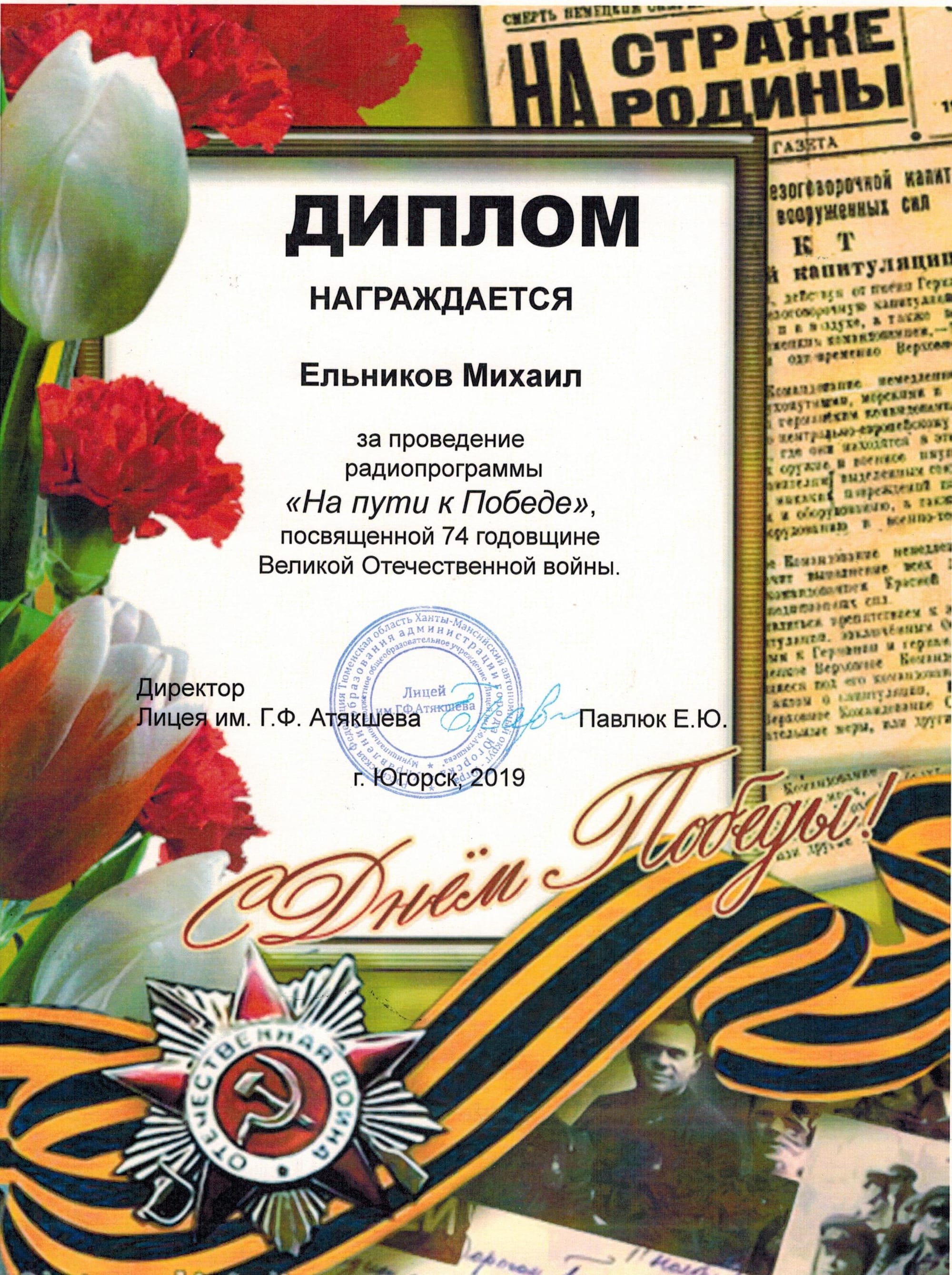 Благодарность директора Лицея им. Г.Ф. Атякшева за активное участие а проектировании и реализации инициатив, связанных с эффективностью работы дополнительного образования в МБОУ №Лицей им. Г.Ф. Атякшева»;