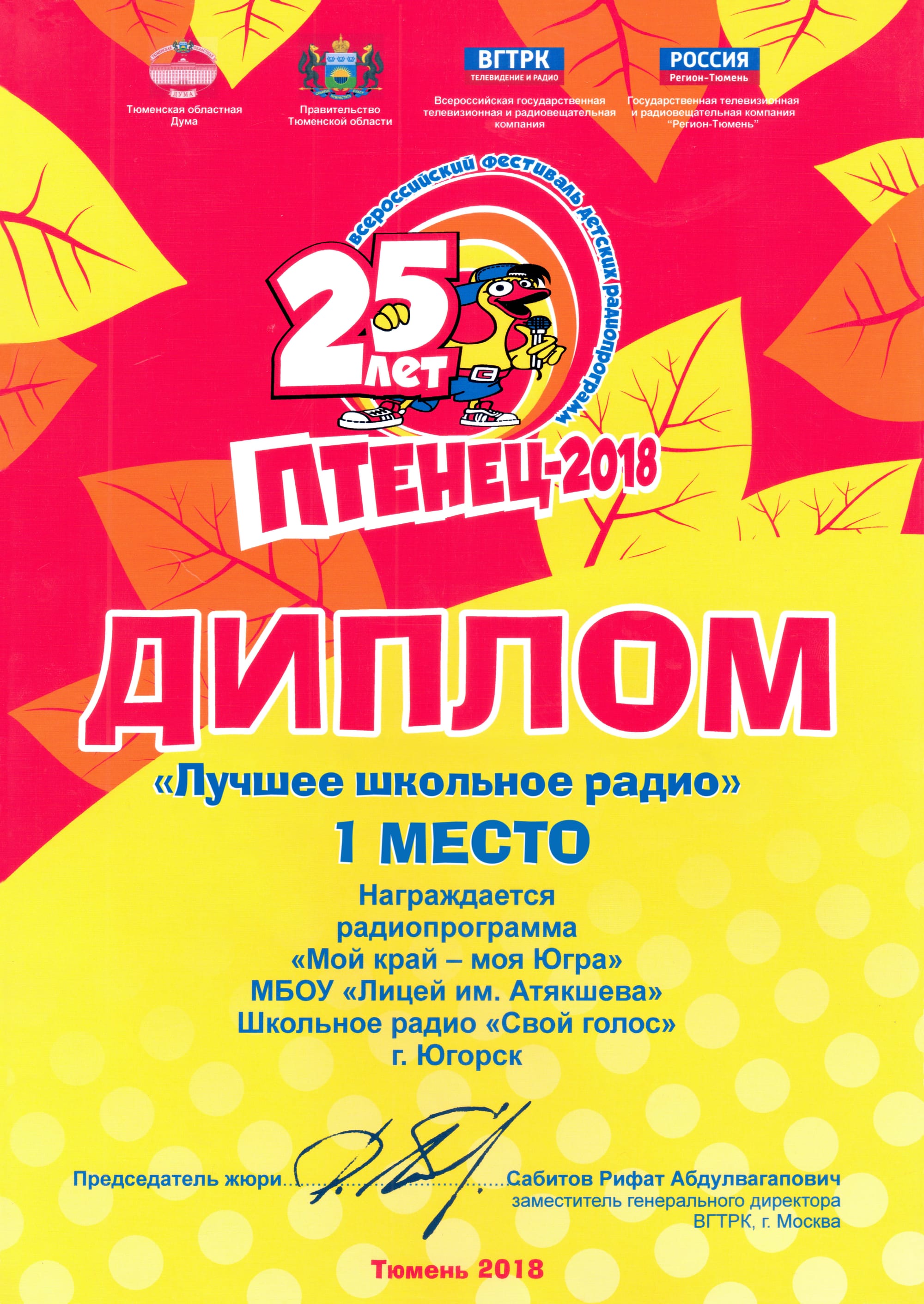 Куратор информационно-медийного направления Лицея им. Г.Ф. Атякшева.