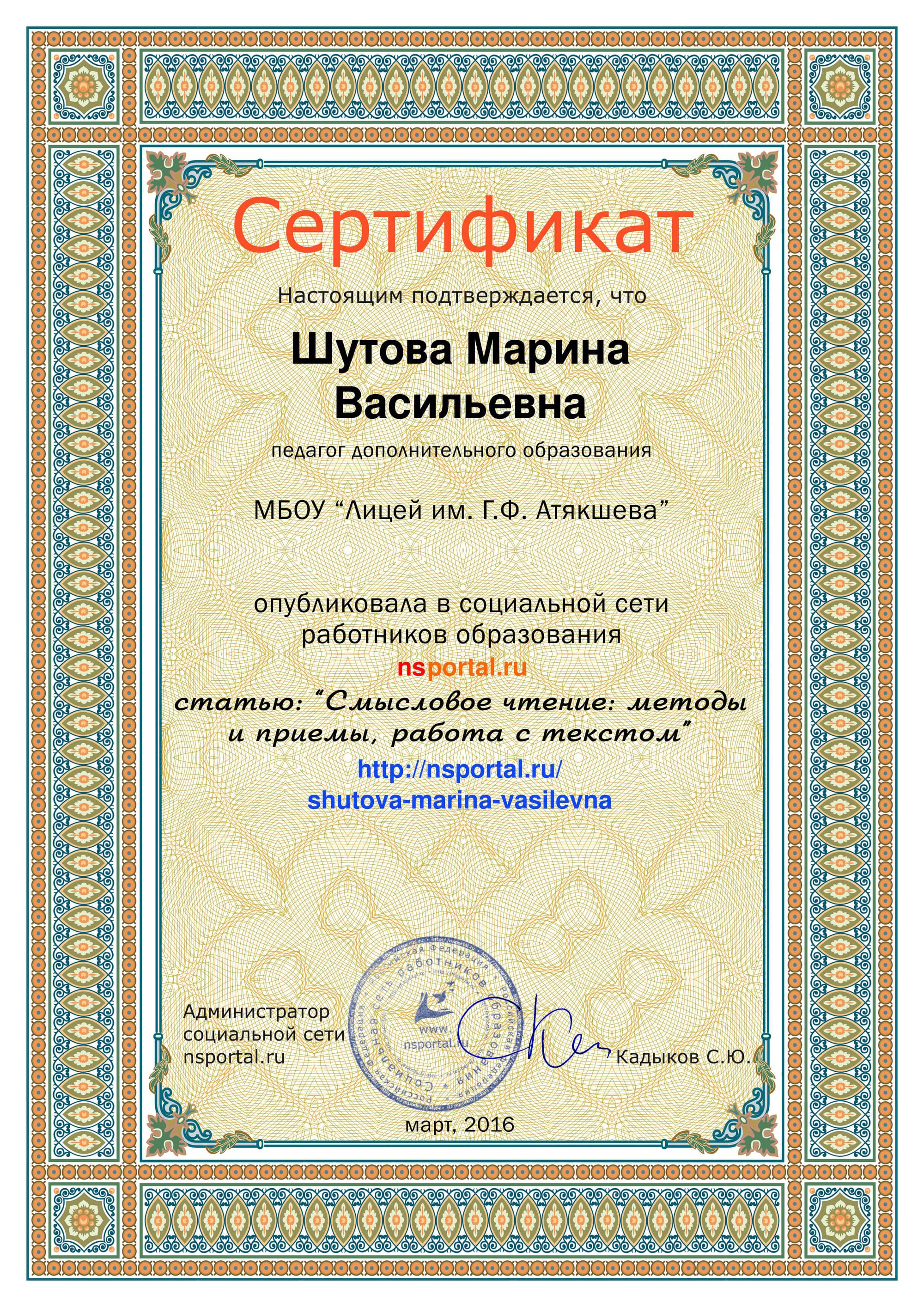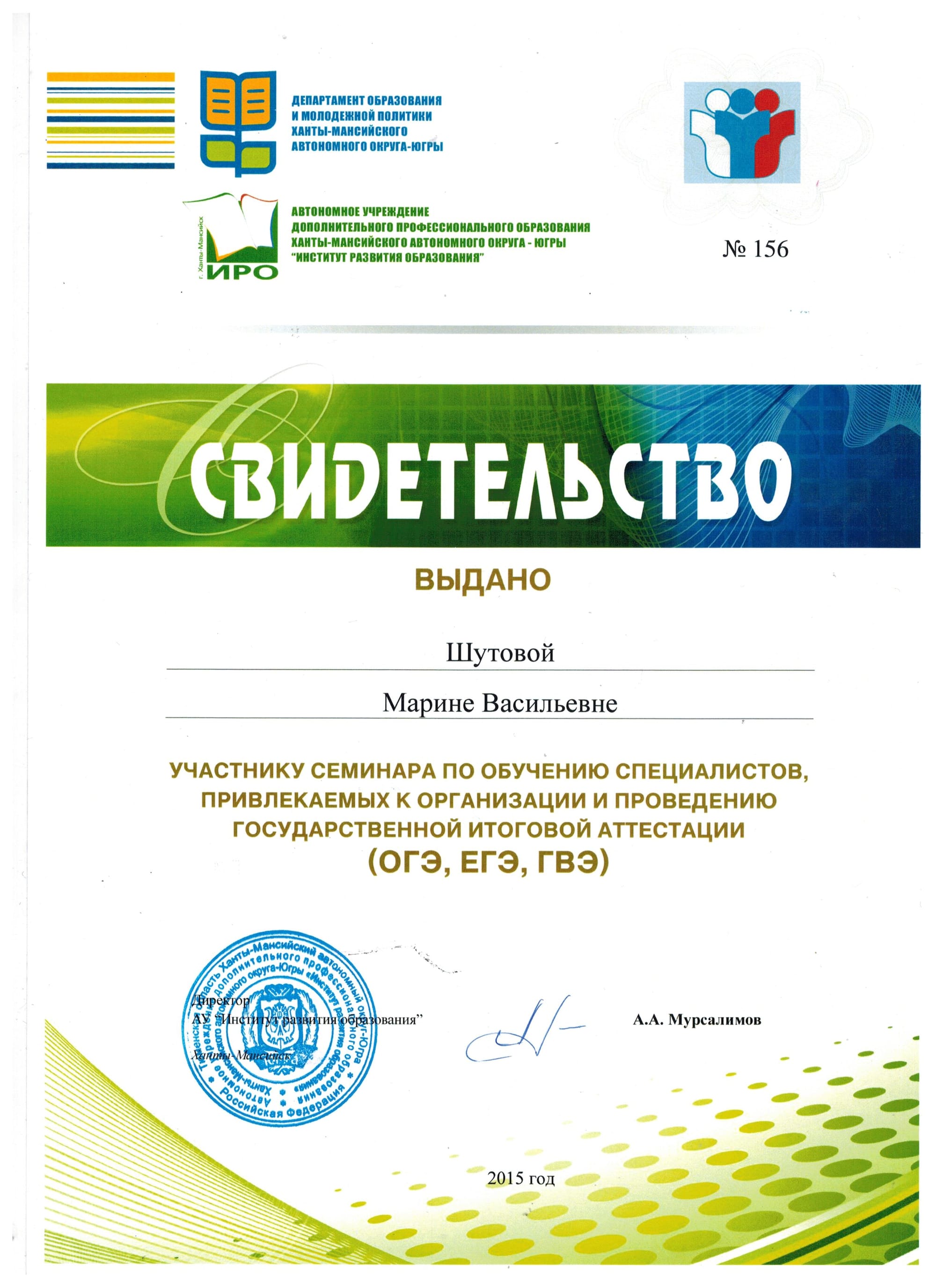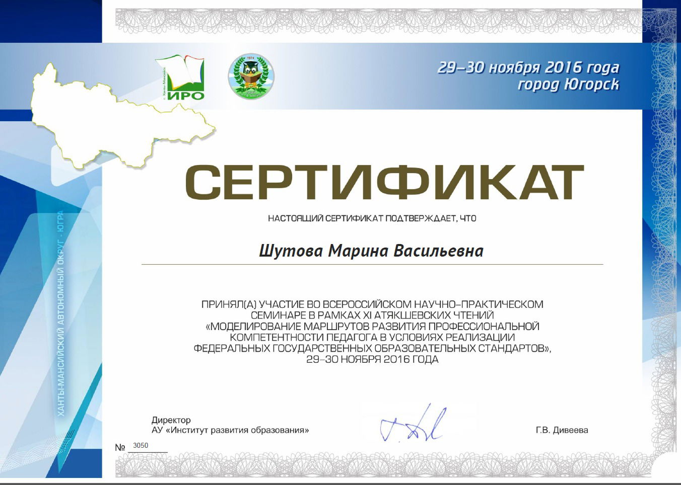 Шутова Марина Васильевна Образование высшее. Окончила Гурьевский педагогический институт.